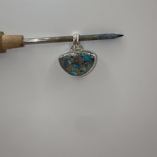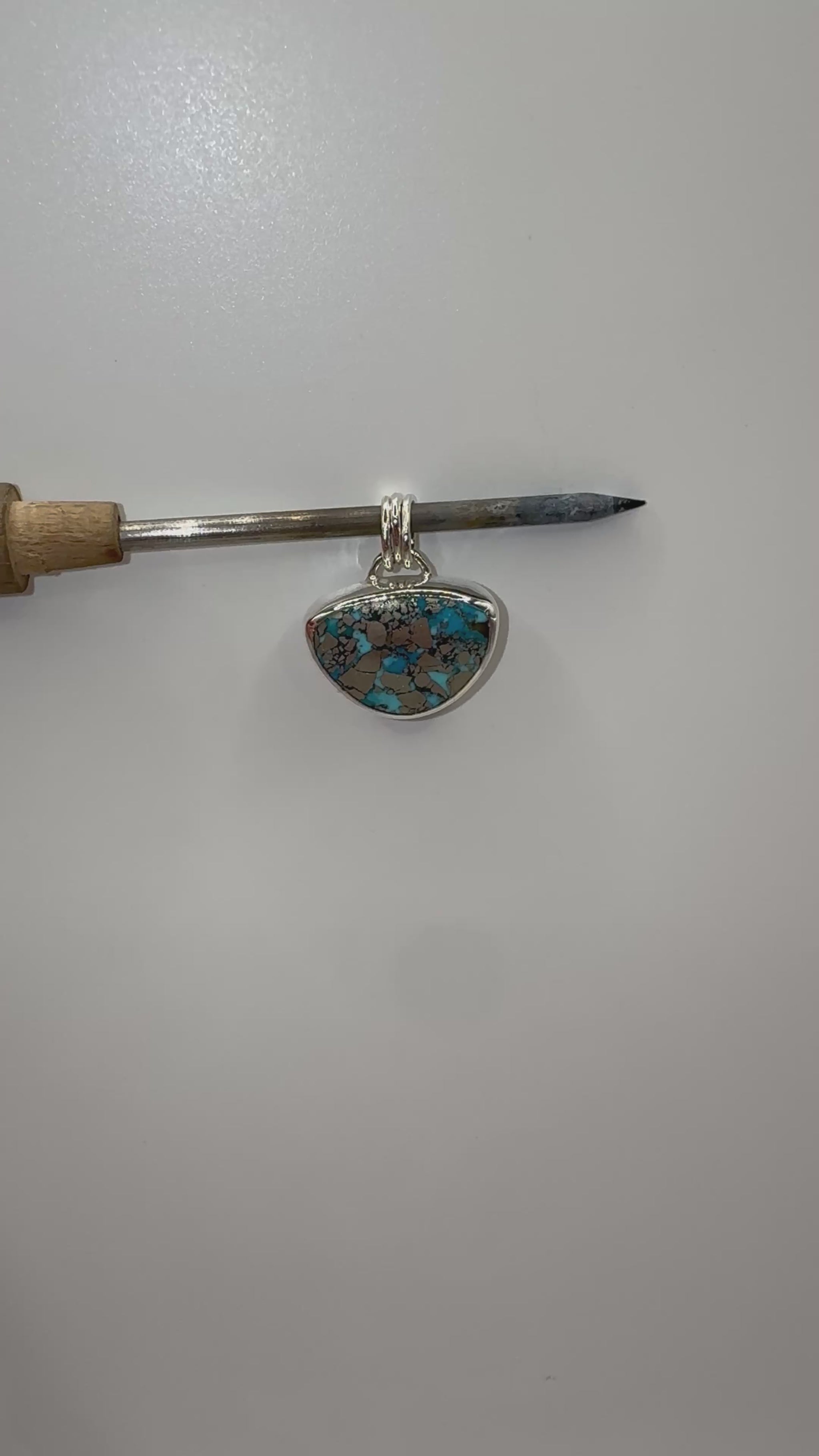 Hand fabricated sterling silver pendant crowned with a vibrant Turquoise x Pyrite stone. Each piece features natural variations, making it a unique statement piece.